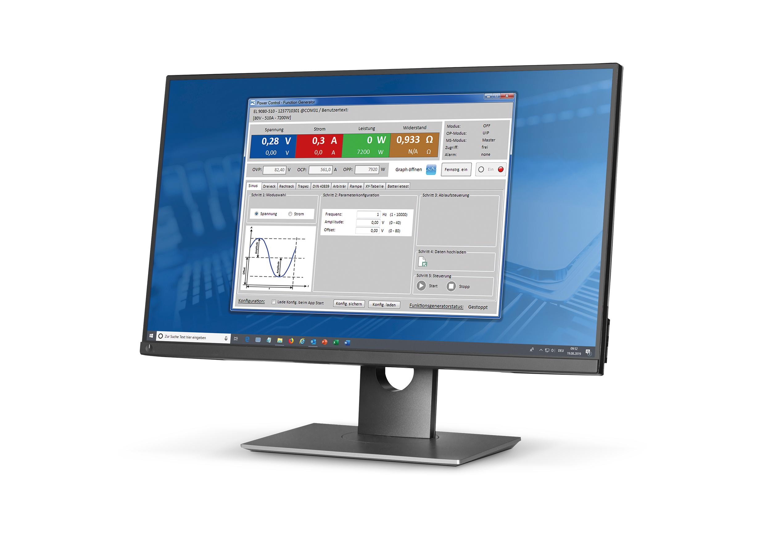 EA-Power Control is a software package for managing, controlling and programming of EA devices from a MS Windows © PC. The software puts EA devices directly on your computer screen and allows you to operate them, just as if you were operating them via the device HMI. EA-Power Control offers some advanced applications for simulation or testing of different test objects.
